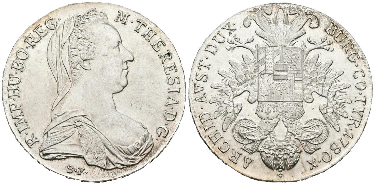 English AUSTRIA. 1 Thaler. (Ar. 28.10g / 41mm). 1780. Maria Teresa. (Km # T1). Modern re-minting. Good Extremely Fine. Slight scratch.