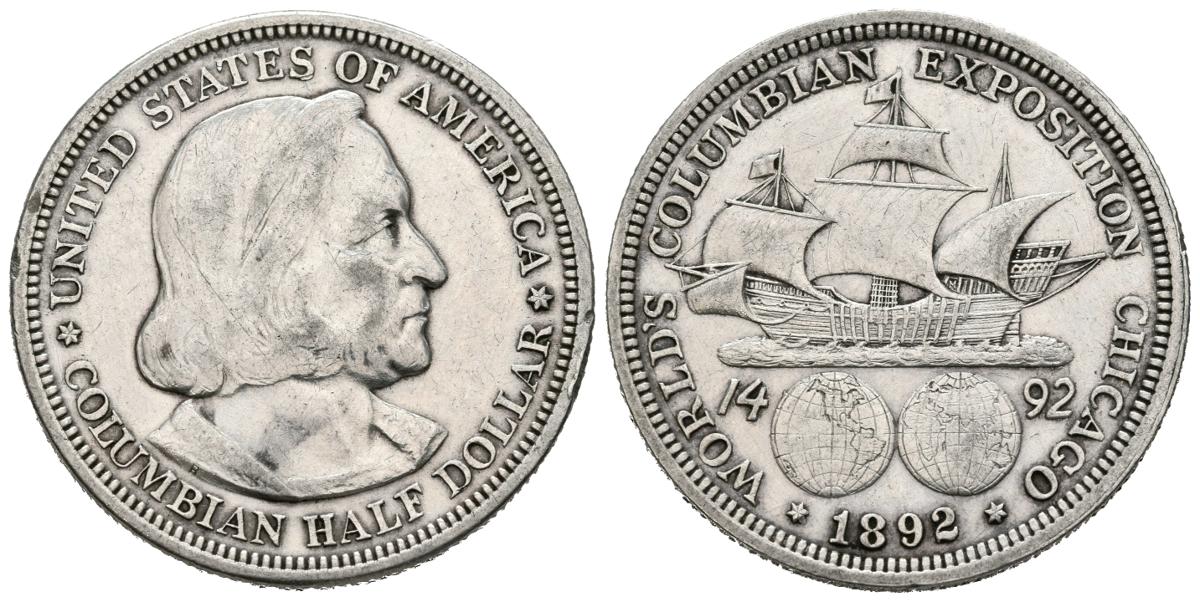 English USA. 1/2 Dollar. (Ar. 12.51g / 36mm). 1892. Philadelphia. World Columbia Exposition Chicago. (Km # 117). Very Fine.