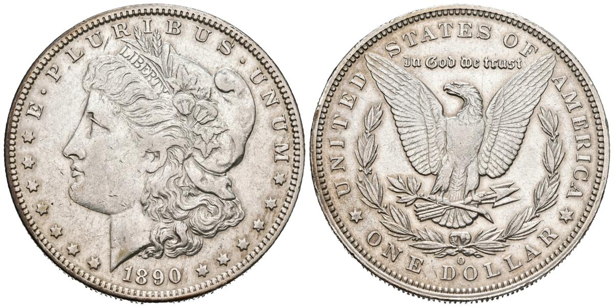 USA. 1 USD (Ar. 26.66g / 38mm). 1890. New Orleans. O. (Km # 110). Good Very Fine. Marquitas on the obverse.