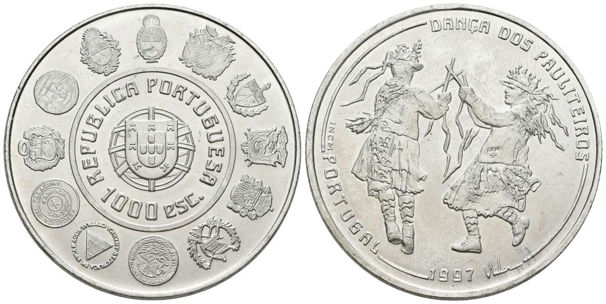PORTUGAL. 1000 Escudos. (Ar. 27.04g / 40mm). 1997. Lisbon. Dance of the Pauliteiros. (Km # 704). Good Extremely Fine.
