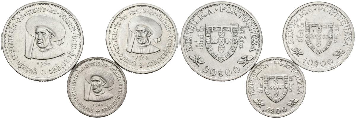 English PORTUGAL. Precious set of 3 silver coins of 20, 10 and 5 Escudos of the Infante Don Enrique. 1960. High level of conservation in general. TO EXAMINE.