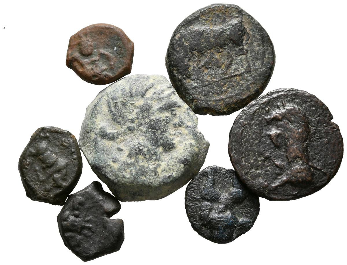 ANTIGUA HISPANIA. Lot consisting of 7 Iberian bronzes, containing 6 Ebusus coins of different types and modules and 1 Carteia bronze. TO EXAMINE.