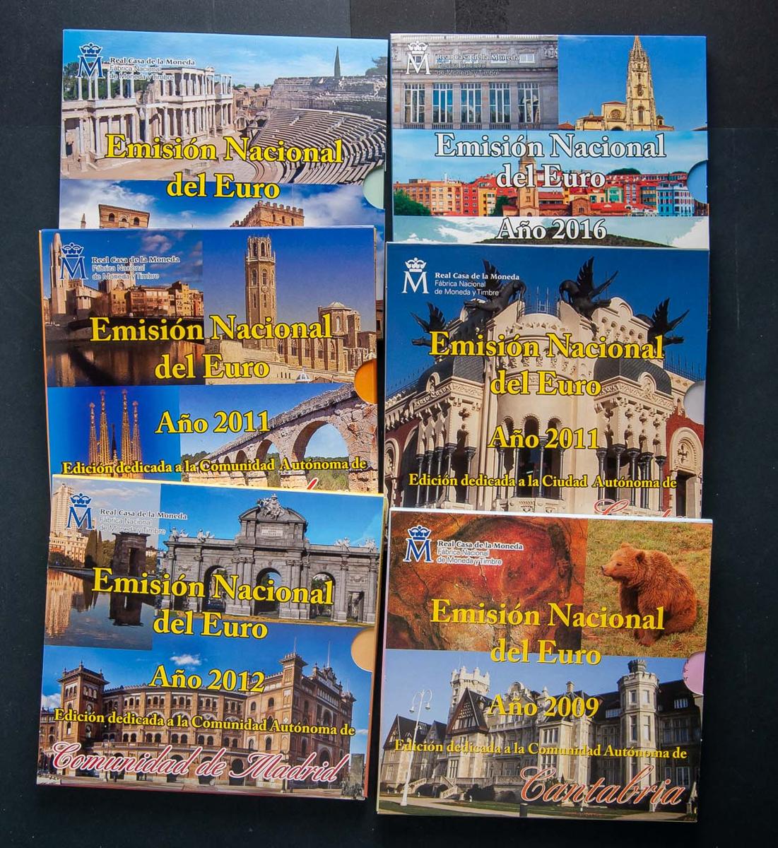 English EUROS. Interesting collection made up of the 19 editions of the National Euro Issue (of all the Autonomous Communities plus Ceuta and Melilla) plus several special commemorative series, including: the 50th anniversary of His Majesty Felipe VI, the IV Centenary of Miguel de Cervantes, the Historic City of Toledo or the XXV Anniversary of the Spanish Constitution among others. All the collection presented in their original boxes and in perfect condition. TO EXAMINE