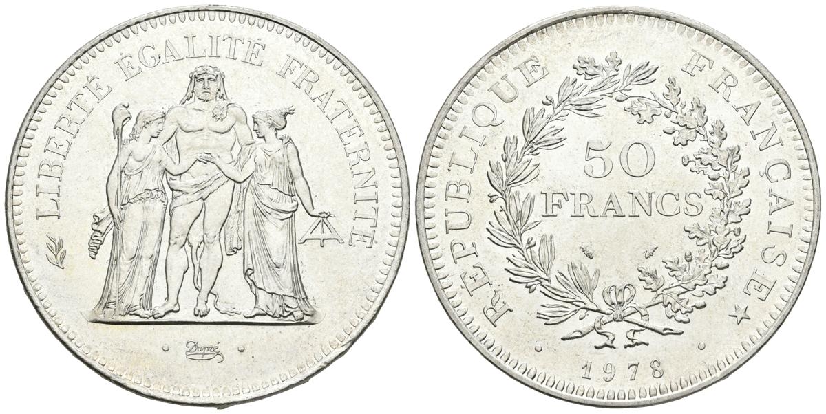 FRANCIA. 50 Francs. 1978. Km#941. Ar. 29,83g. SC-.