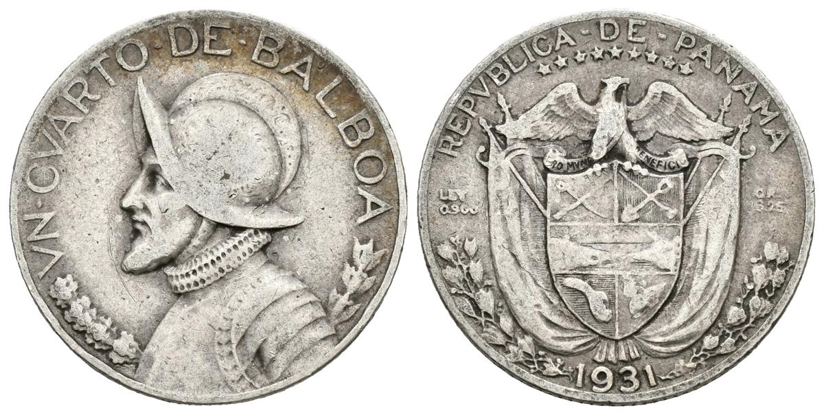 PANAMA. 1/4 Balboa. 1931. Km#11.1. Ar. 6,17g. MBC-. Rara.
