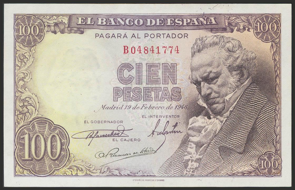 100 Pesetas. 19 de Febrero de 1946. Serie B. (Edifil 2017: 451b). EBC-.