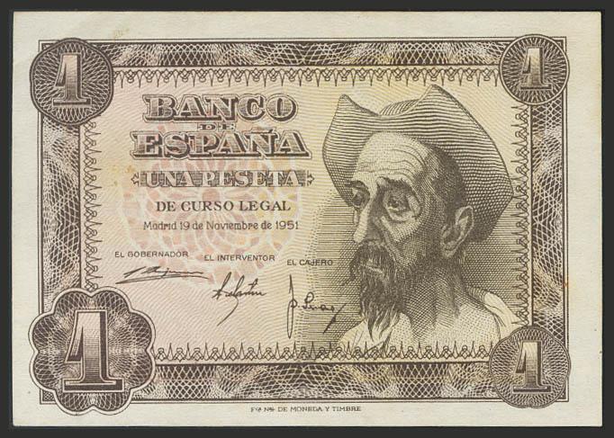 1 Peseta. 19 de Noviembre de 1951. Sin serie. (Edifil 2017: 461). EBC+.