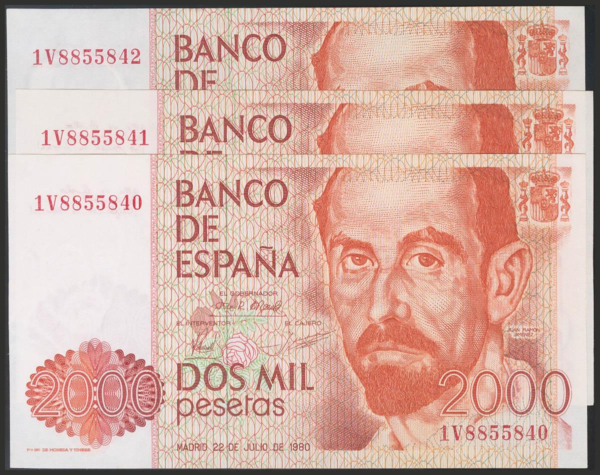 2000 Pesetas. 22 de Julio de 1980. Serie 1V. Trío correlativo. (Edifil 2017). EBC+.