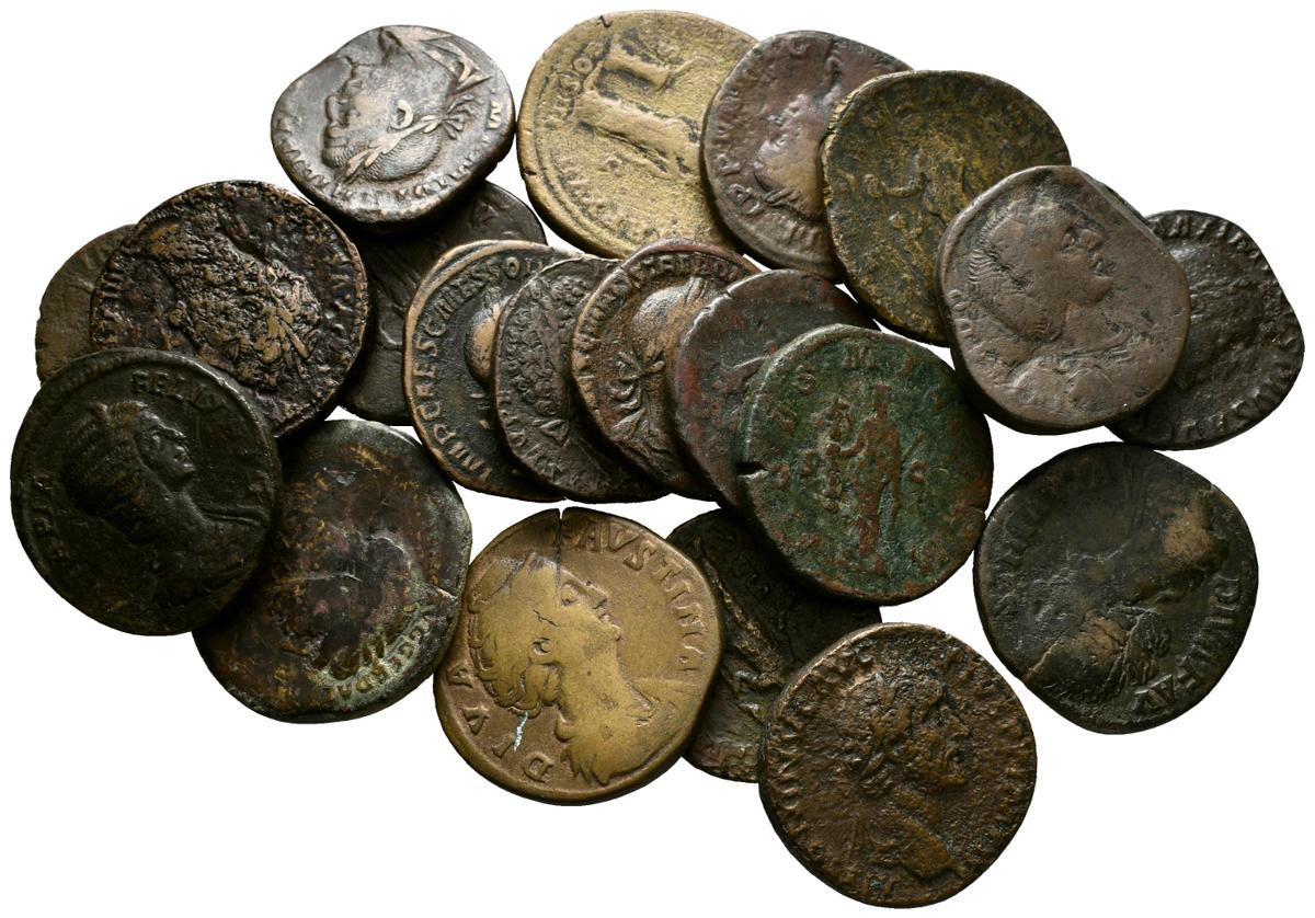 IMPERIO ROMANO. Lote compuesto por 20 Sestercios de los siguientes emperadores. Marco Aurelio, Antonino Pío, Faustina, Faustina II, Trajano, Gordiano III, Septimio Severo, Alejandro Severo, Julia Domna, Julia Mamaea, Maximino, Filipo I el árabe, Filipo II, Treboniano Galo y Trajano Decio. Ae. BC-/MBC. A EXAMINAR.