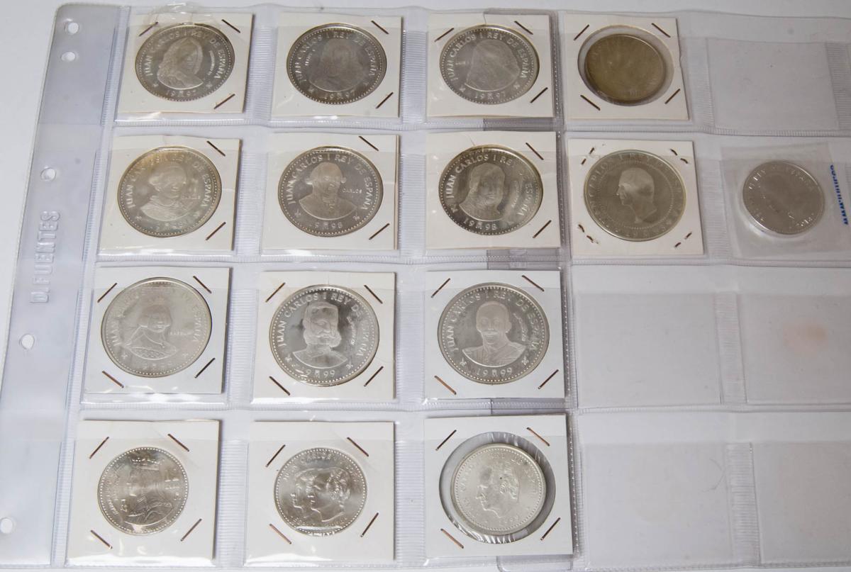 MONARQUIA ESPAÑOLA. Lote compuesto por 15 monedas de plata. Emisiones 2000 Pesetas conmemorativas del III Centenario de la Casa de Borbón 1997-1999 con la efigie de los monarcas Felipe V, Fernando VI, Luis I, Carlos III, Carlos IV, Fernando VII, Isabel II, Alfonso XII y Alfonso XIII, incluye: 2000 Pesetas. 1993 Año Santo; 2000 Pesetas. 1994 y 1999; 12 Euros 2004 (2 tipos) y 30 Euros 2014. Ar. PROOF.