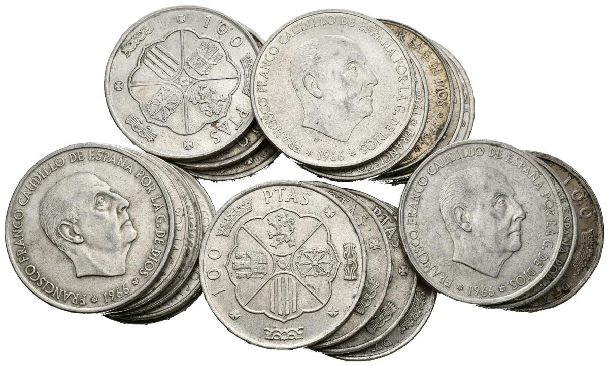 ESTADO ESPAÑOL. Lote compuesto por 20 monedas de 100 Pesetas 1966, *19-66 (8), *19-67 uno en ángulo recto (4), *19-68 (7) y *19-70 (1). Ar. MBC-/EBC-. A EXAMINAR.