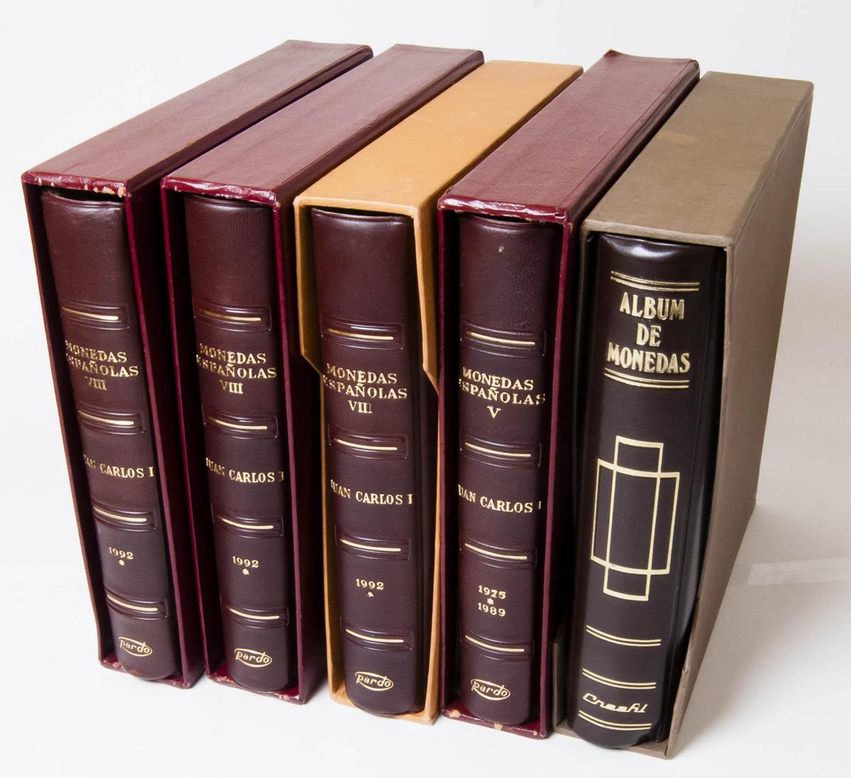 JUAN CARLOS I. Colección avanzada comprendiendo desde 1975 a 2001, todas las series básicas y gran cantidad de emisiones conmemorativas en plata incluyendo cinquentines (10000 Pesetas y 25 Ecus). Presentados en albumes Pardo con hojas especiales. SC/PROOF.