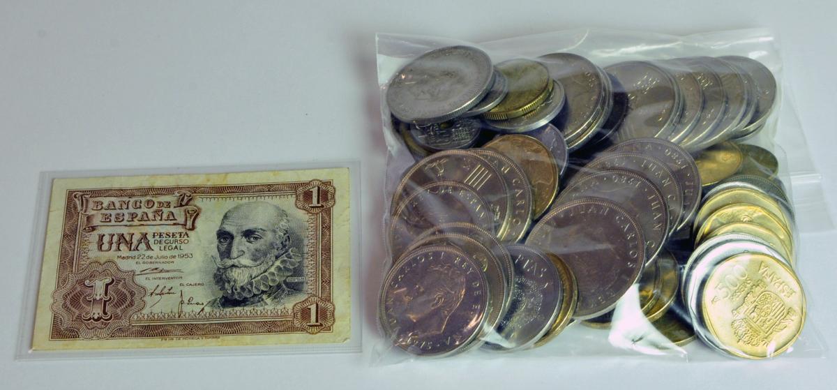 ESPAÑA. Lote compuesto más de 50 monedas variadas desde Alfonso XIII a Juan Carlos I, diferentes valores y metales, además un billete de 1 Peseta 1953. MC/SC. A EXAMINAR.