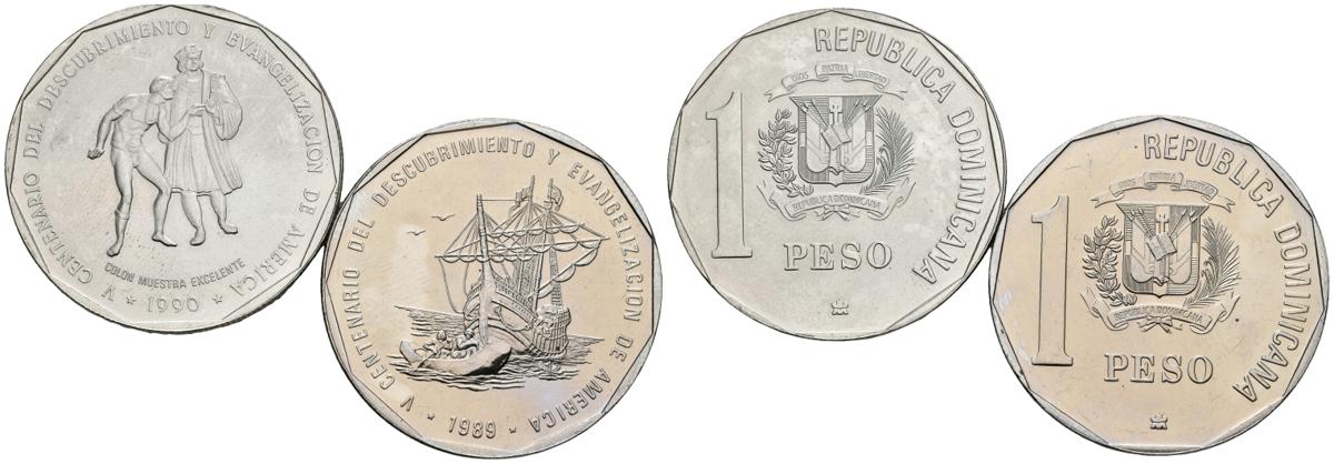REPUBLICA DOMINICANA. Lote compuesto por: 1 Peso. 1989. Km#74 y 1 Peso. 1990. Km#77. SC-/SC.