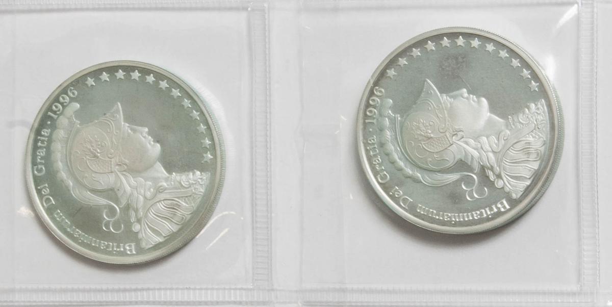 REINO UNIDO. Conjunto de 3 monedas Euro del año 1996, incluyendo: 25 Euros (Ar 23,26g) y 25 Euros "Piedfort" (Ar. 47,29g). Peso total de Plata: 70,52g. A EXAMINAR. PROOF. Todas las monedas sin estuche oficial.
