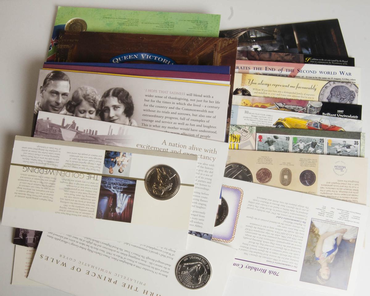 GRAN BRETAÑA. Lote compuesto por 41 estuches conmemorativos con gran variedad de emisiones en diferentes metales Plata, Cupro-Niquel, Niquel. Todas distintas. PROOF. A EXAMINAR.