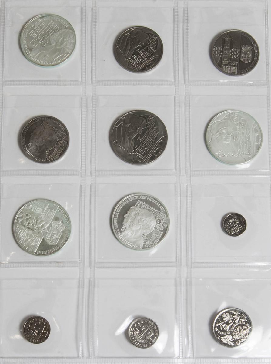 HOLANDA. Conjunto de 66 monedas de Ecu, comprendiendo desde el año 1987 hasta el 1997, incluyendo del año 1987: 1 Ecu (Ar 33,44g). Del año 1988: 1 Ecu (Ar 19,02g). Del año 1989: 2,50 Ecus (Ar 14,68g), 10 Ecus (Ar 18,93g) y 25 Ecus (Ar 25,01g). Del año 1990: 1 Ecu (Ae 6,00g), 1 Ecu (Ae 6,10g), 1 Ecu (Ae 5,94g), 2,50 Ecus (Ar 14,73g), 2,50 Ecus (Ae 14,72g), 10 Ecus (Ar 21,82g), 25 Ecus (Ar 25,03g) y 25 Ecus (Ar 25,16g). Del año 1991: 2,50 Ecus (Ar 15,82g), 2,50 Ecus (Ar 15,41g), 2,50 Ecus (Ar 15,51g), 2,50 Ecus (Ar 15,07g), 10 Ecus (Ar 20,86g), 25 Ecus (Ar 25,00g), 25 Ecus (Ar 25,08g), 25 Ecus (Ar 25,01g). Del año 1992: 2,50 Centecus (Ar 2,15g), 5 Centecus (Ar 2,72g), 10 Centecus(Ar 3,62g), 25 Centecus (Ar 6,06g), 50 Centecus (Ae 4,92g), 100 Centecus (Ar 8,93g), 2,50 Ecus (Ar 15,36g), 2,50 Ecus (Ar 15,50g), 5 Ecus (Ae 6,95g), 10 Ecus (Ar 25,28g), 10 Ecus (Ar 22,08g), 25 Ecus (Ar 25,19g) y 25 Ecus (Ar 25,16). Del año 1993: 2,50 Ecus (Ar 15,43g), 2,50 Ecus (Ar 15,45g), 10 Ecus (Ar 25,19g), 10 Ecus (Ar 22,71g), 25 Ecus (Ar 25,06g), 25 Ecus (Ar 25,21g). Del año 1994: 2,50 Ecus (Ar 18,00g), 2,50 Ecus (Ar 15,40g), 10 Ecus (Ar 23,01g), 10 Ecus (Ar 24,96g), 25 Ecus (Ar 25,22g) y 25 Ecus (Ar 25,40g). Del año 1995: 2 Ecus (Ar 9,34g), 2 Ecus (Ar 9,35g), 2 Ecus (Ar 9,38g), 2 Ecus (Ar 9,40g), 2 Ecus (Ar 9,33g), 2,50 Ecus (Ar 15,43g), 2,50 Ecus (Ar 15,31g), 10 Ecus (Ar 22,43g), 10 Ecus (Ar 24,98g), 25 Ecus (Plata esmaltada 23,83g), 25 Ecus (Ar 24,99g). Del año 1996: 2,50 Ecus (Ar 15,47g), 10 Ecus (Ar 22,37g), 25 Ecus (Ar 24,90g), 25 Ecus (Ar 23,01g). Del año 1997: 2,50 Ecus (Ar 15,39g), 10 Ecus (Ar 22,36g), 10 Ecus (Ar 22,43g), 25 Ecus (Ar 25,11g) y 25 Ecus (Ar 25,06g). Peso total de plata: 1143,51g. A EXAMINAR. PROOF. Todas las monedas sin estuche oficial.