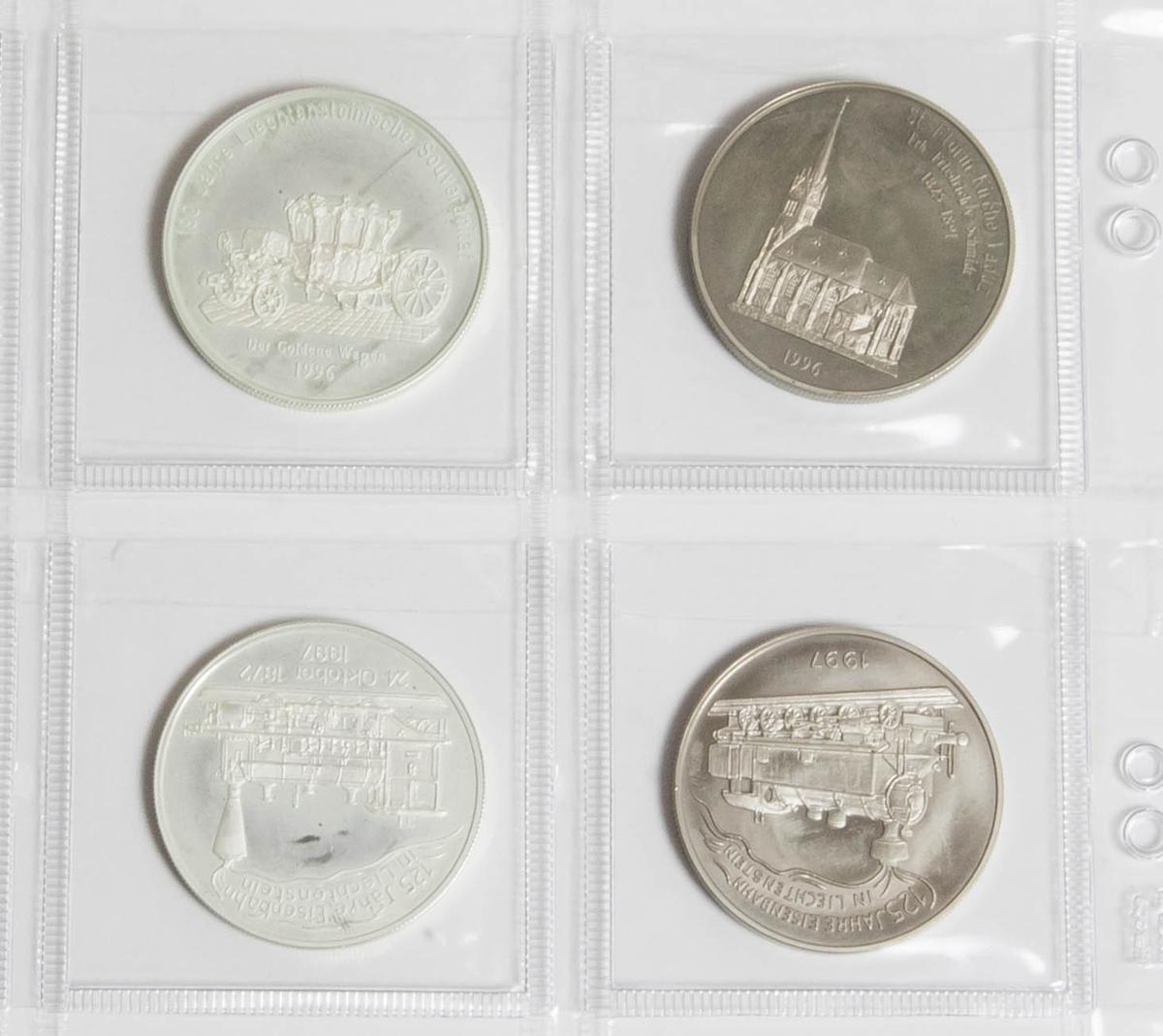 LIECHTENSTEIN. Conjunto de 4 monedas de Euro de 1996 y 1997, incluyendo del año 1996: 5 Euros (Ar 31,32g) y 20 Euros (Ar 25,05g). Del año 1997: 5 Euros (Ar 26,45g) y 20 Euros (Ar 24,93g). Peso total de plata: 107,75g. A EXAMINAR. PROOF. Todas las monedas sin estuche oficial.