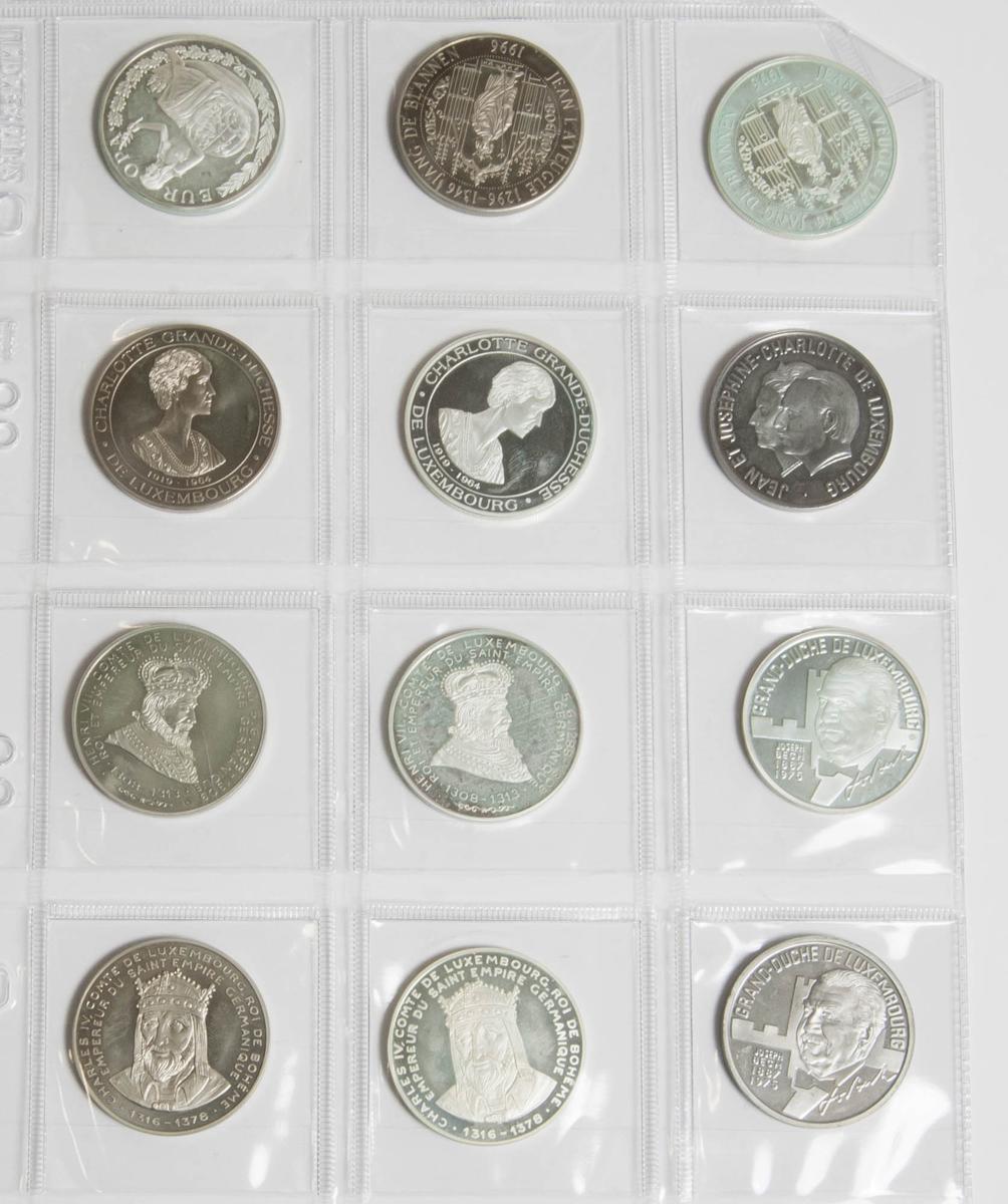LUXEMBURGO. Conjunto de 12 monedas de Ecu desde el año 1992 hasta el año 1996, incluyendo del año 1992: 5 Ecus (Ar 22,95g) y 20 Ecus (Ar 24,92g). Del año 1993: 5 Ecus (Ar 22,73g), 5 Ecus (Ar 26,49g), 20 Ecus (Ar 24,93g) y 25 Ecus (Ar 22,85g). Del año 1994: 5 Ecus (Ar 26,51g) y 20 Ecus (Ar 25,08g). Del año 1995: 5 Ecus (Ar 22,52g) y 25 Ecus (Plata esmaltada 24,12g). Del año 1996: 5 Ecus (Ar 26,35) y 20 Ecus (Ar 25,01g). Peso total de plata: 294,55g. A EXAMINAR. PROOF. Todas las monedas sin estuche oficial.