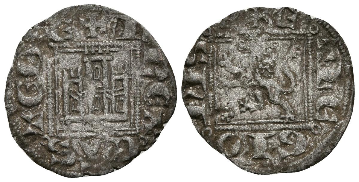 ALFONSO XI. Novén. (1312-1350). Sin marca de ceca. Flor de 5 pétalos delante del león. AB 354var. Ve. 0,74g. MBC.