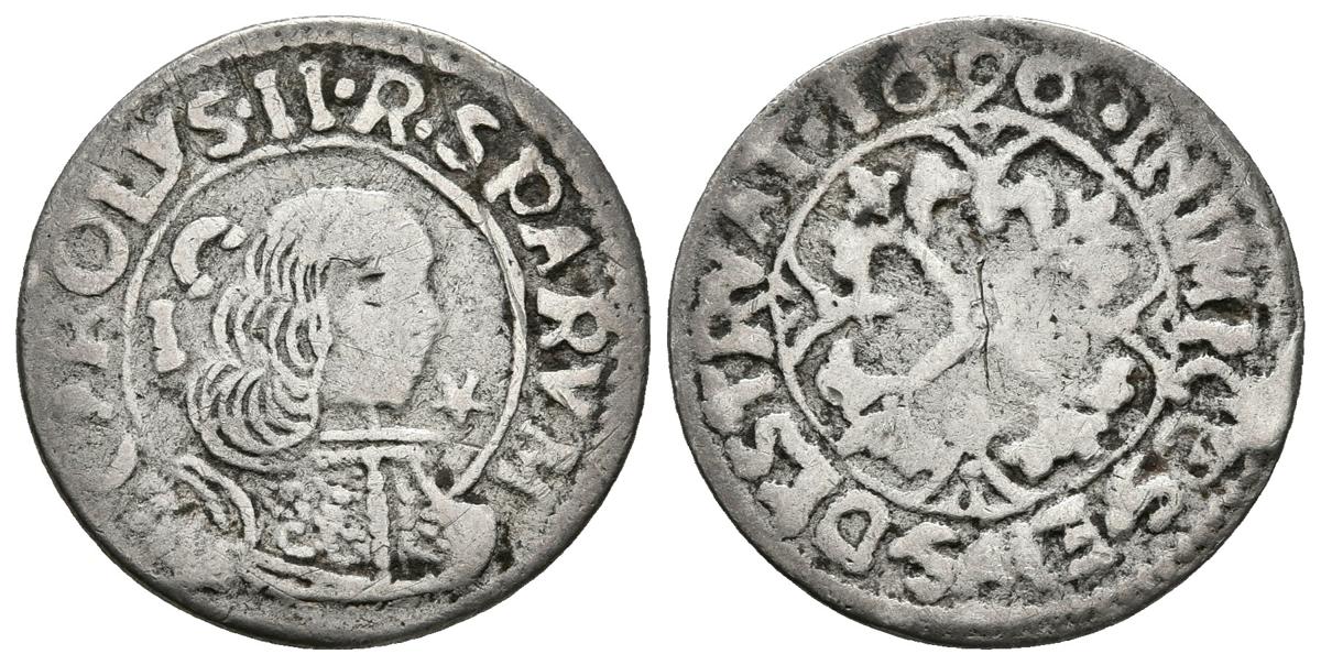 CARLOS II. Cagliari-1 Real. 1696. Cerdeña. Vti. 227; MIR. 88.7; Piras 166. Ar. 2,20g. BC+.