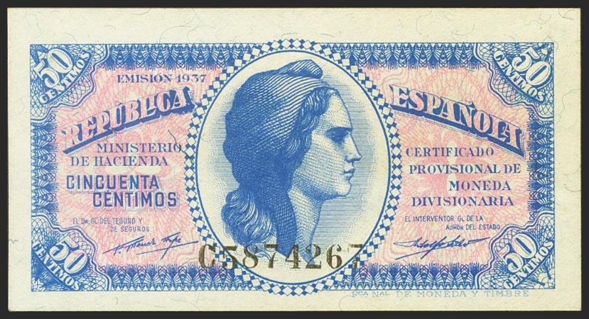 50 Cents. 1937. Series C, last series issued. (Edifil 2021: 391a). Uncirculated.