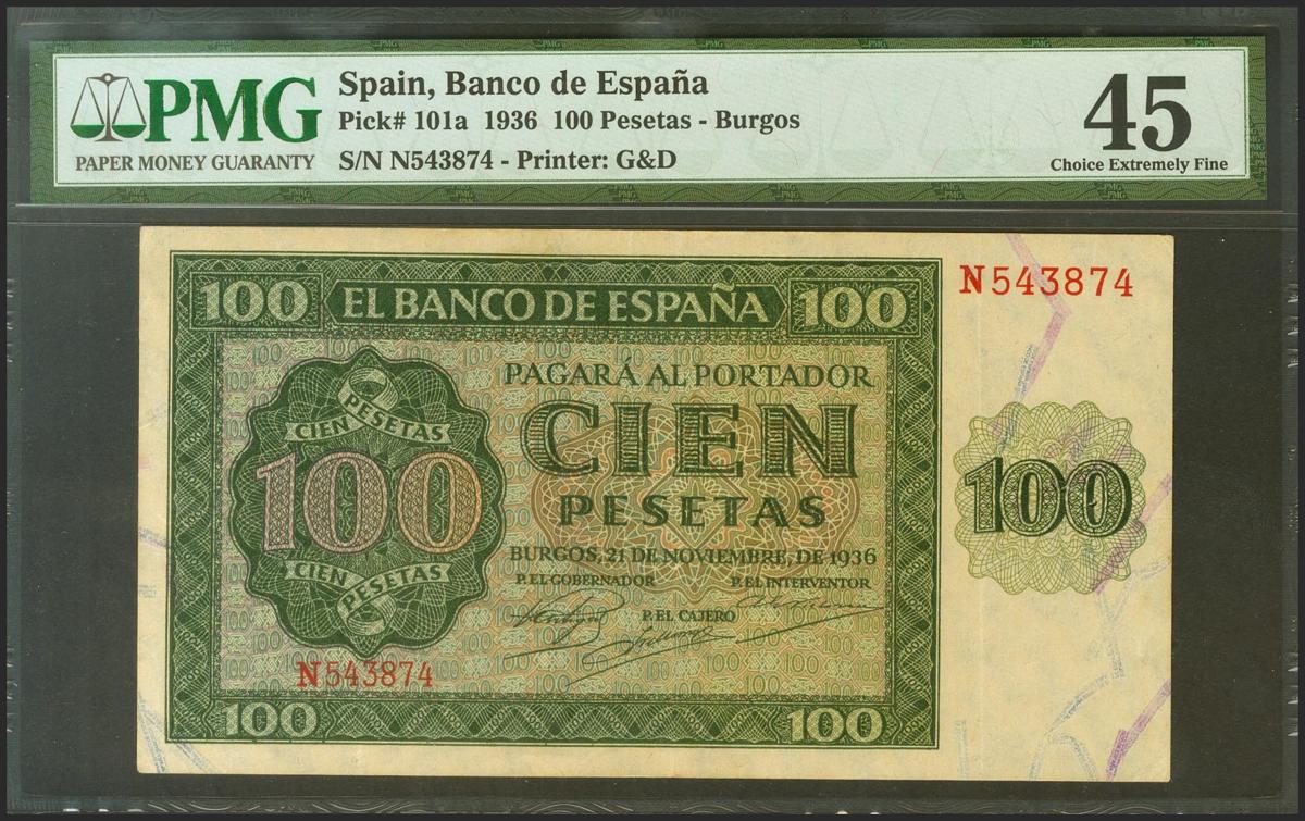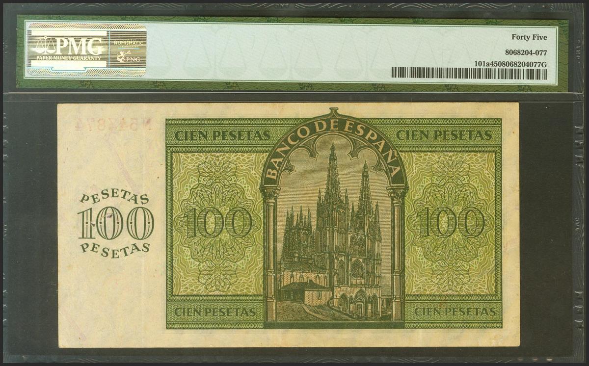 100 pesetas. November 21, 1936. Series N. (Edifil 2021: 421a, Pick: 101a). Extremely Fine. PMG45 package.