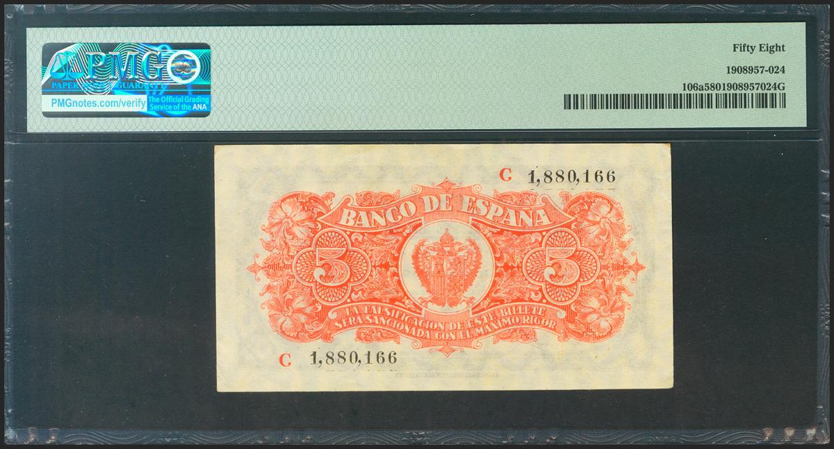 English 5 Pesetas. July 18, 1937. Series B. (Edifil 2021: 424a, Pick: 106a). EBC ++. PMG58 package.