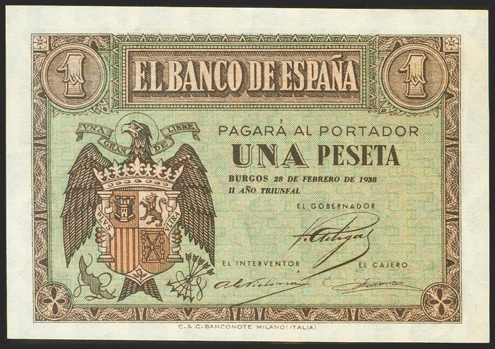 1 peseta. February 28, 1938. Series E. (Edifil 2021: 427a). Original sizing. Uncirculated.