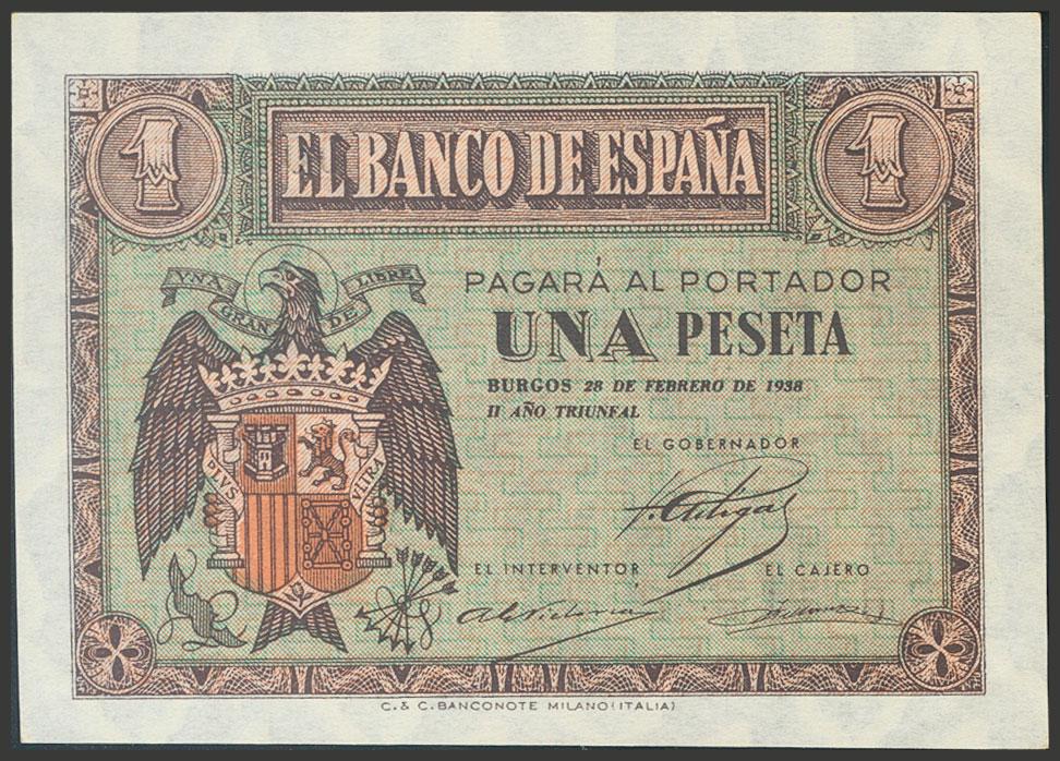 1 peseta. February 28, 1938. Series F. (Edifil 2017: 427a). Original sizing. Almost Uncirculated.