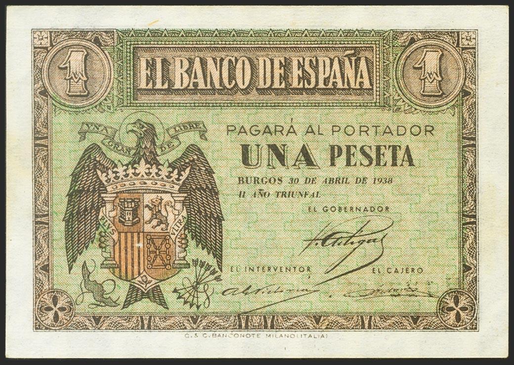1 peseta. April 30, 1938. Series H. (Edifil 2021: 428a). Original sizing. Uncirculated.