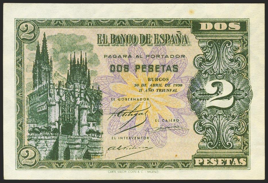 2 Pesetas. April 30, 1938. Series A. (EDifil 2021: 429). It retains much of the original size. EBC ++.