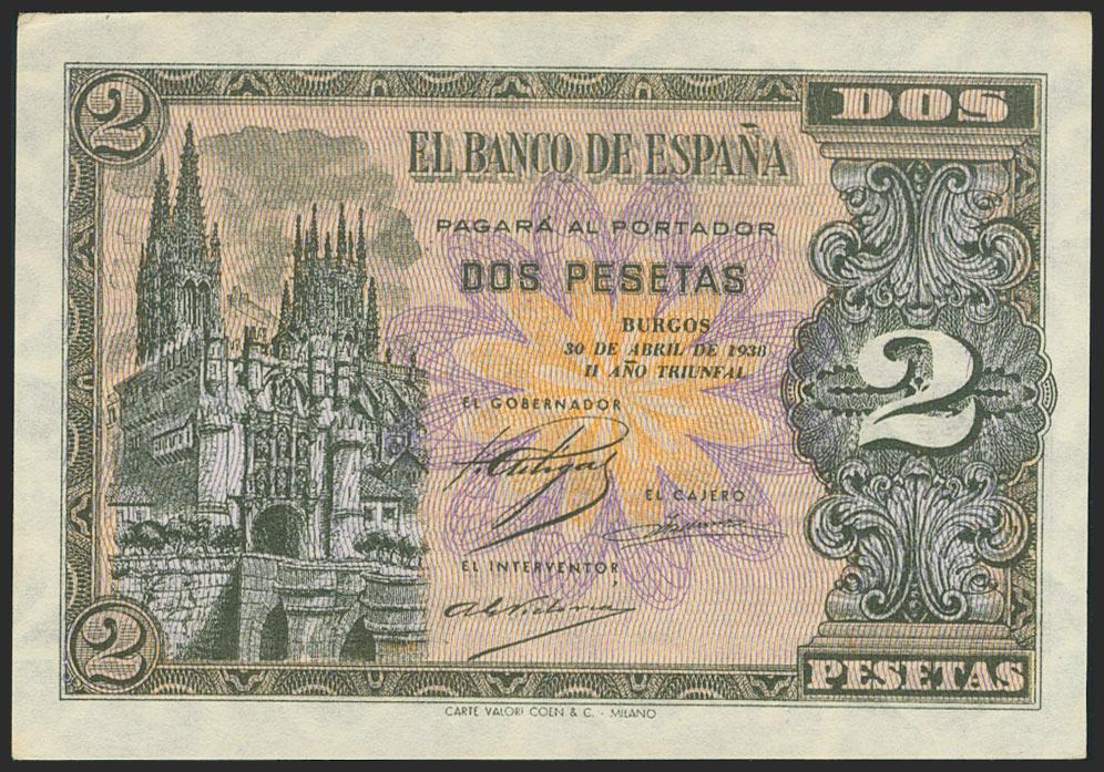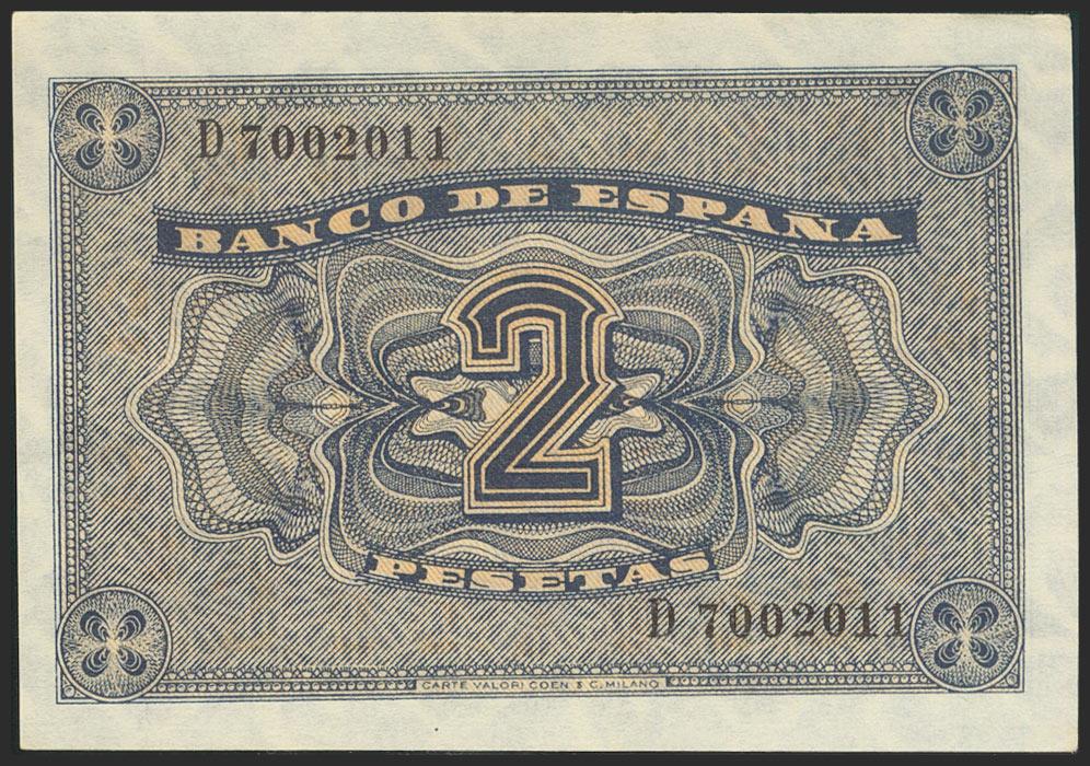 2 Pesetas. April 30, 1938. Series D. (Edifil 2021: 429a). Original sizing. Uncirculated.