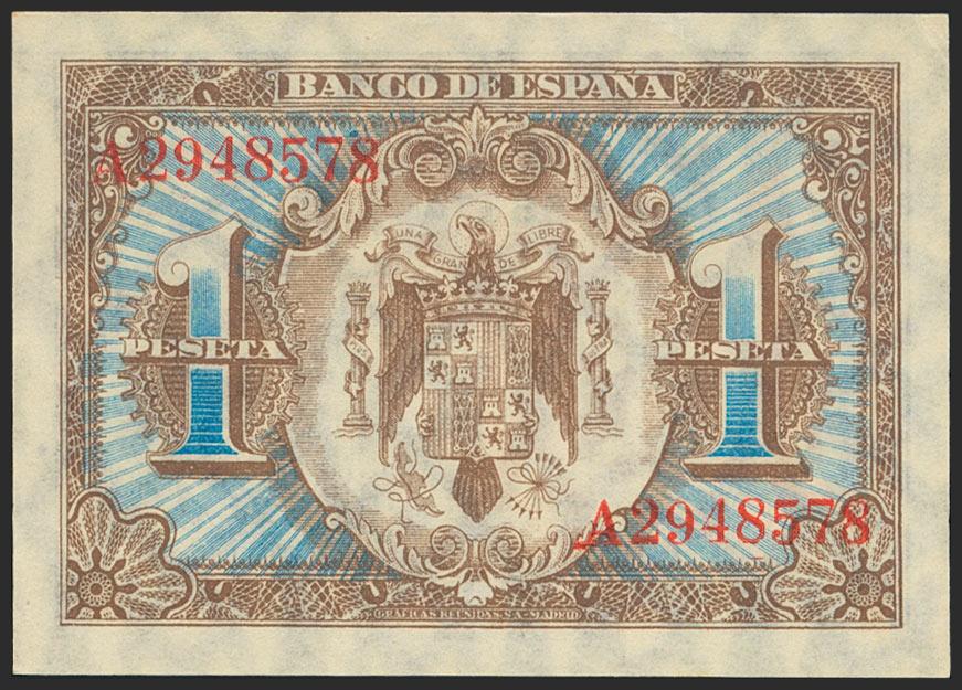 1 peseta. June 1, 1940. Series A. (Edifil 2021: 441a). Original sizing. Almost Uncirculated.