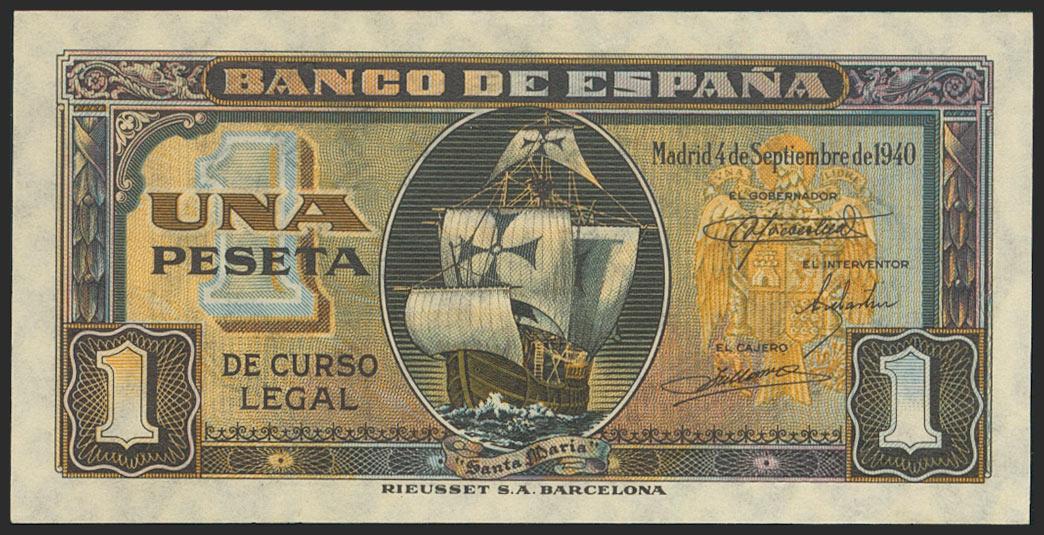 1 peseta. September 4, 1940. Series C. (Edifil 2021: 442a). Original sizing. Almost Uncirculated.
