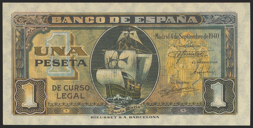 1 peseta. September 4, 1940. Series E. (Edifil 2021: 442a). Original sizing. Uncirculated.