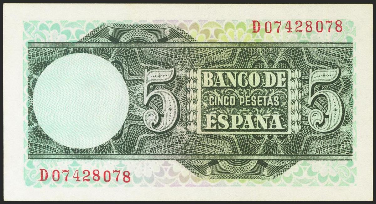 5 Pesetas. March 5, 1948. Series M. (Edifil 2021: 455a). Original sizing. Almost Uncirculated.
