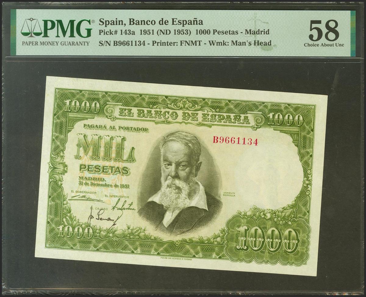 1000 Pesetas. December 31, 1951. Series B. (Edifil 2021: 463a, Pick: 143a). EBC ++. PMG58 package.