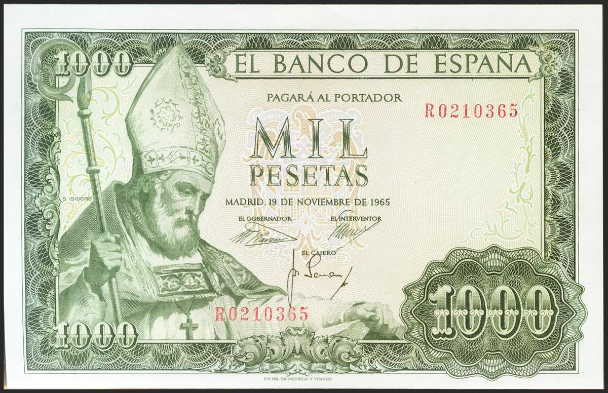 1000 Pesetas. November 19, 1965. Series R. (Edifil 2021: 471b). Original sizing. Good Extremely Fine.
