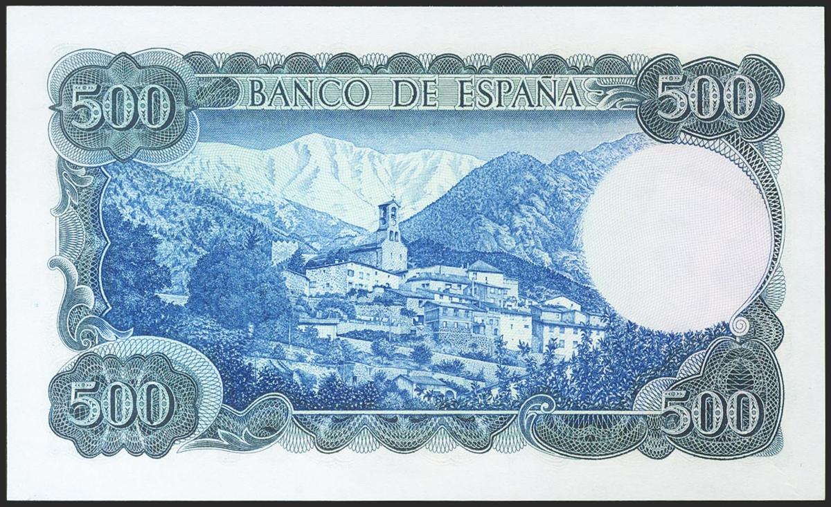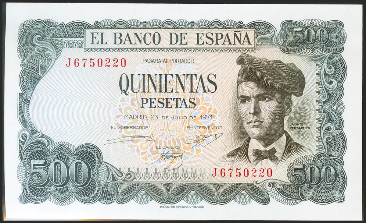 500 pesetas. July 23, 1971. Series J. (Edifil 2021: 473a). Original sizing. Uncirculated.