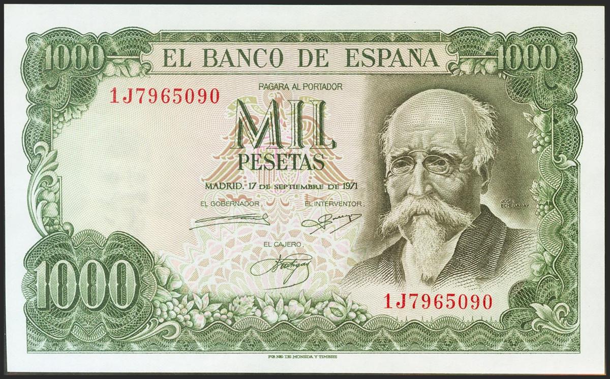 1000 Pesetas. September 17, 1971. Series 1J. (Edifil 2021: 474c). Original sizing. Uncirculated.