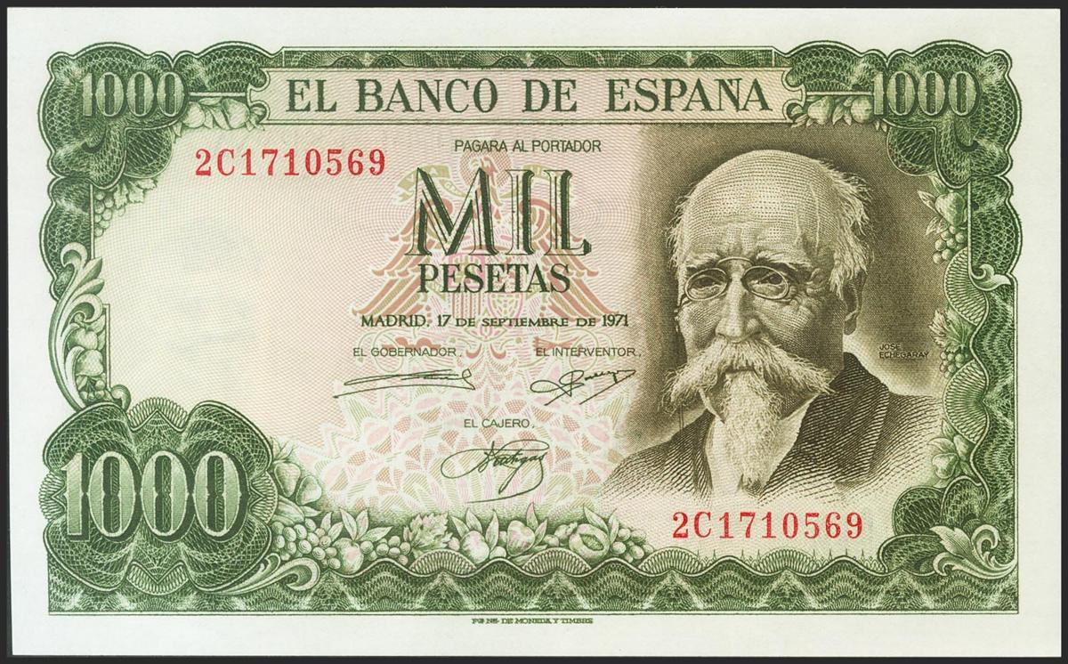 1000 Pesetas. September 17, 1971. Series 2C. (Edifil 2021: 474c). Original sizing. Uncirculated.