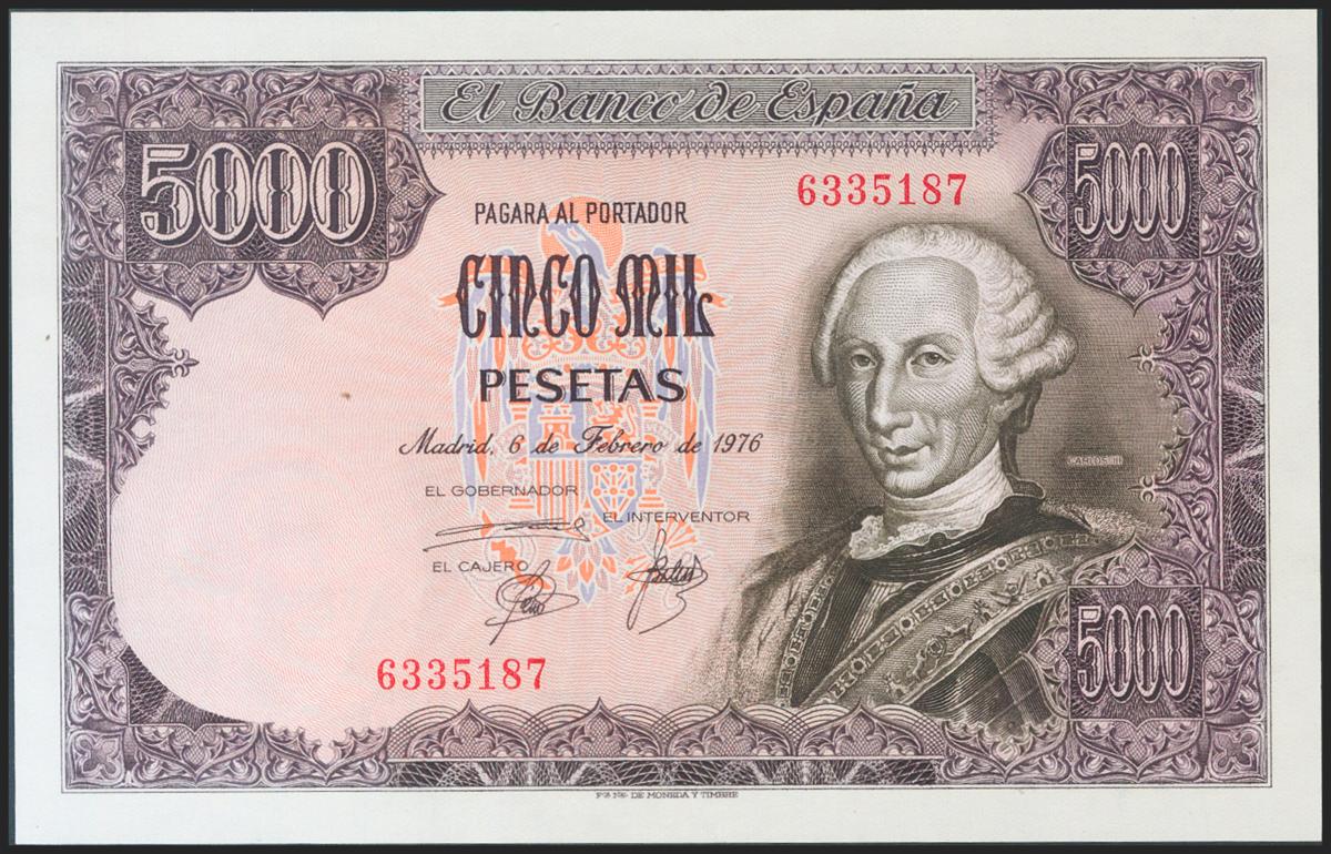 5000 pesetas. February 6, 1976. Without series. (Edifil 2021: 475). Original sizing. Almost Uncirculated.
