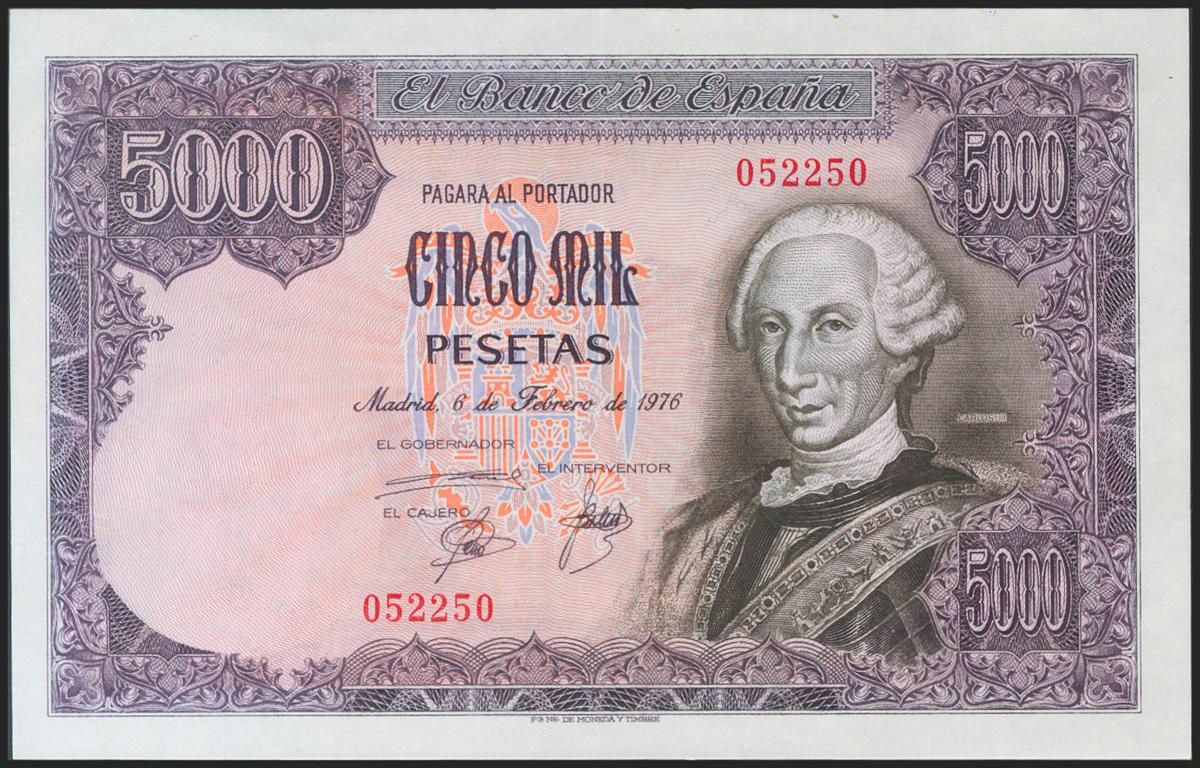 5000 pesetas. February 6, 1976. Without series and capicúa numbering. (Edifil 2021: 475). Original sizing. EBC ++.