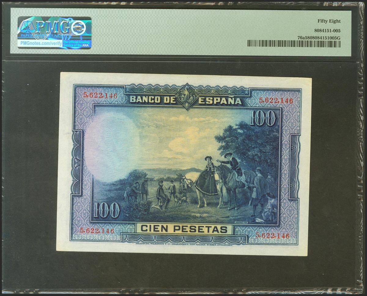100 pesetas. August 15, 1928. Without series. (Edifil 2021: 355, Pick: 76a). EBC ++. PMG58 package.