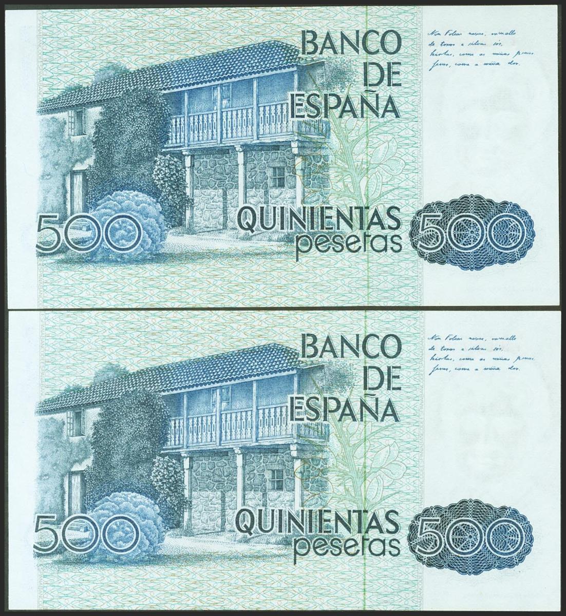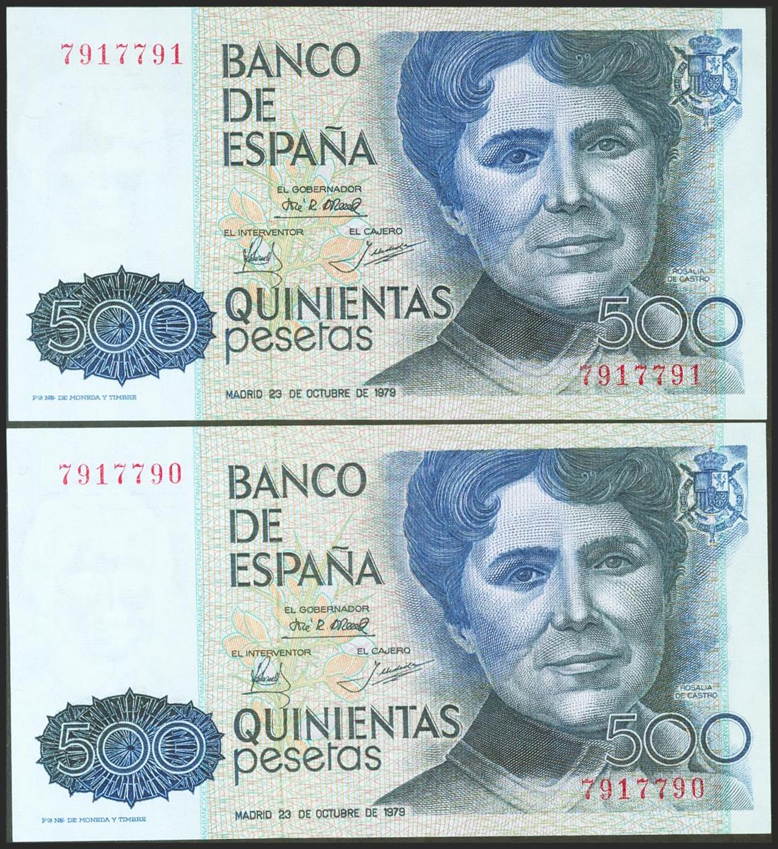 English 500 pesetas. October 23, 1979. Correlative couple. No serie. (Edifil 2017: 476). Uncirculated.