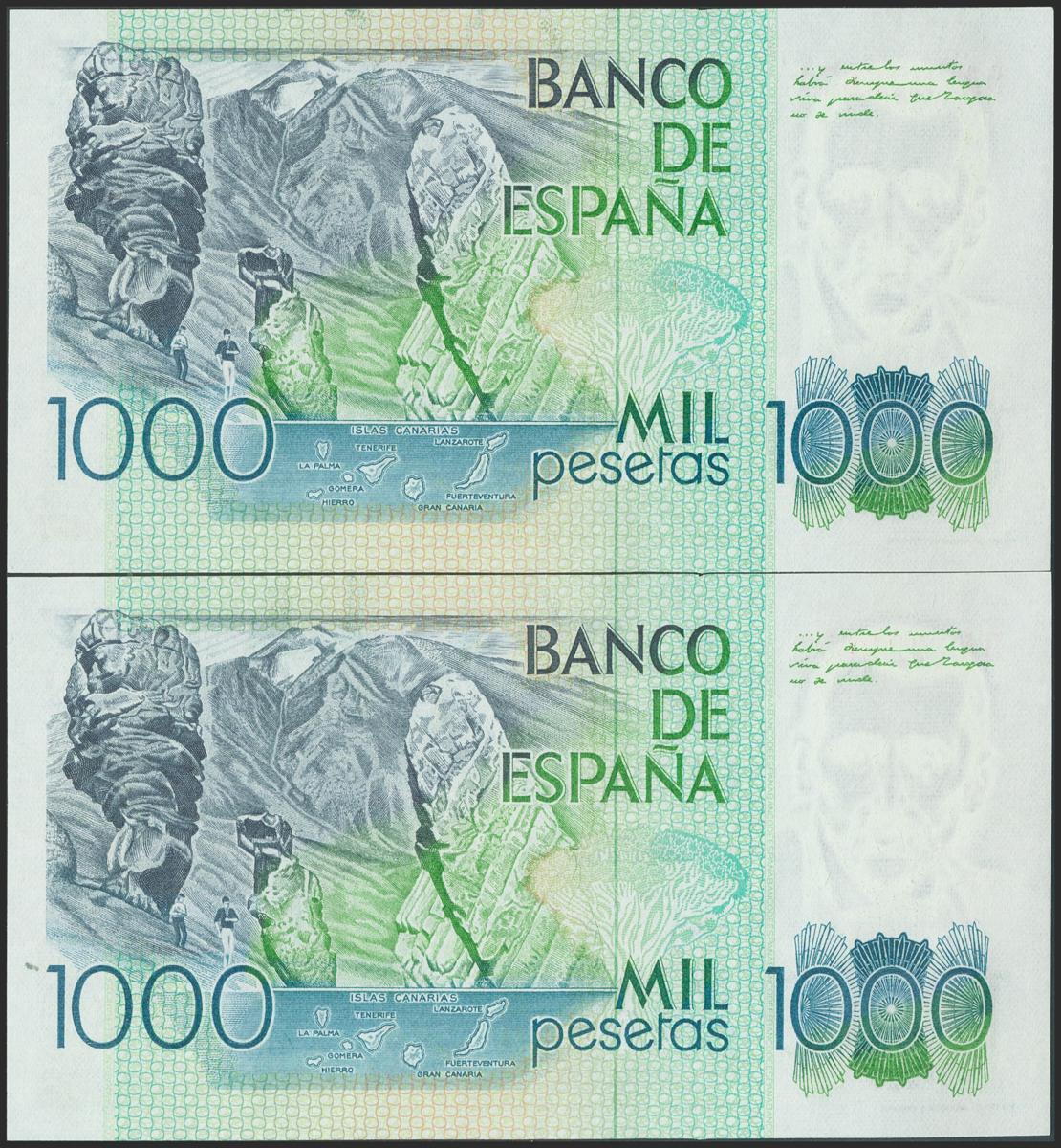 1000 Pesetas. October 23, 1979. Correlative couple. Series 9A. (Edifil 2017: 477b). Unusual Uncirculated.