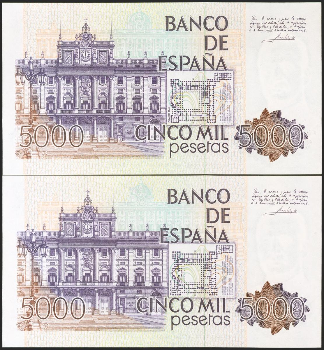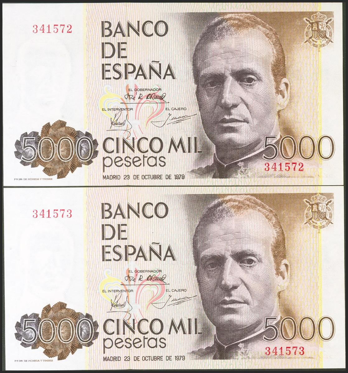 5000 pesetas. October 23, 1979. Correlative couple. No serie. (Edifil 2021: 478). Uncirculated.