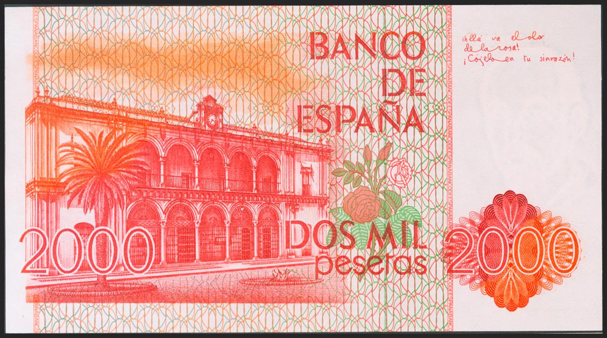 2000 pesetas. July 22, 1980. Without series. (Edifil 2021: 479). Uncirculated.