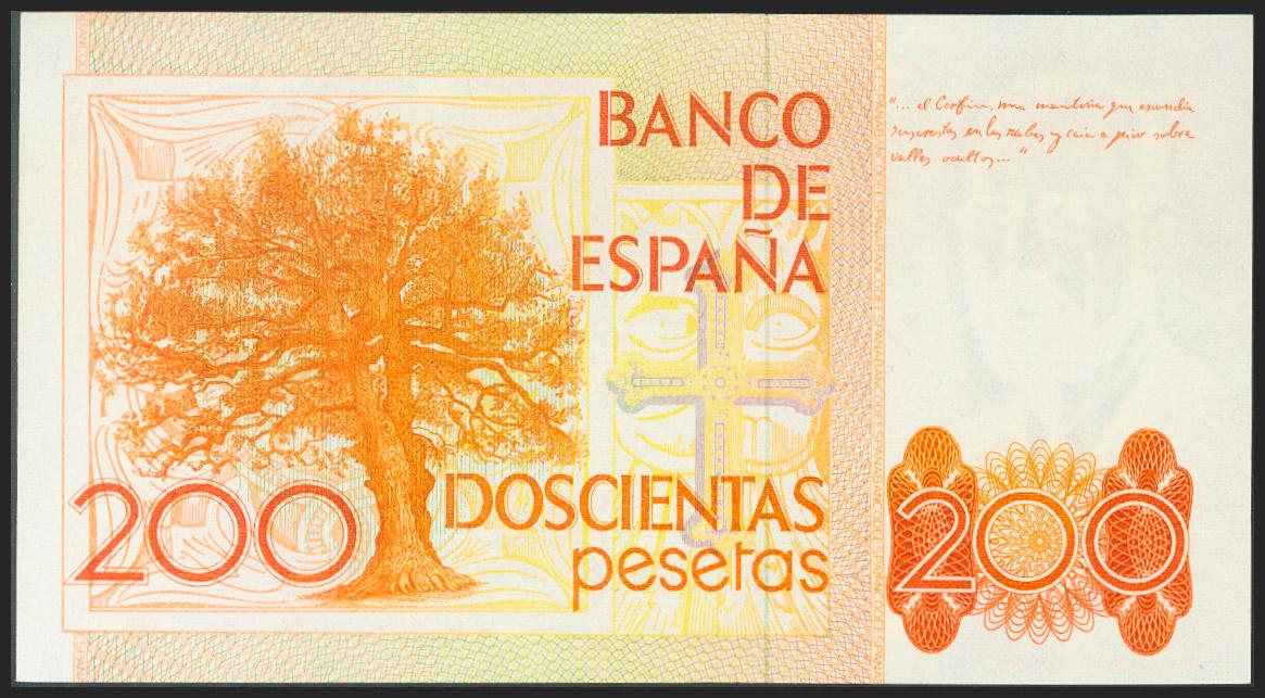 English 200 pesetas. September 16, 1980. Without series and minimal numbering. (Edifil 2021: 480). Uncirculated.